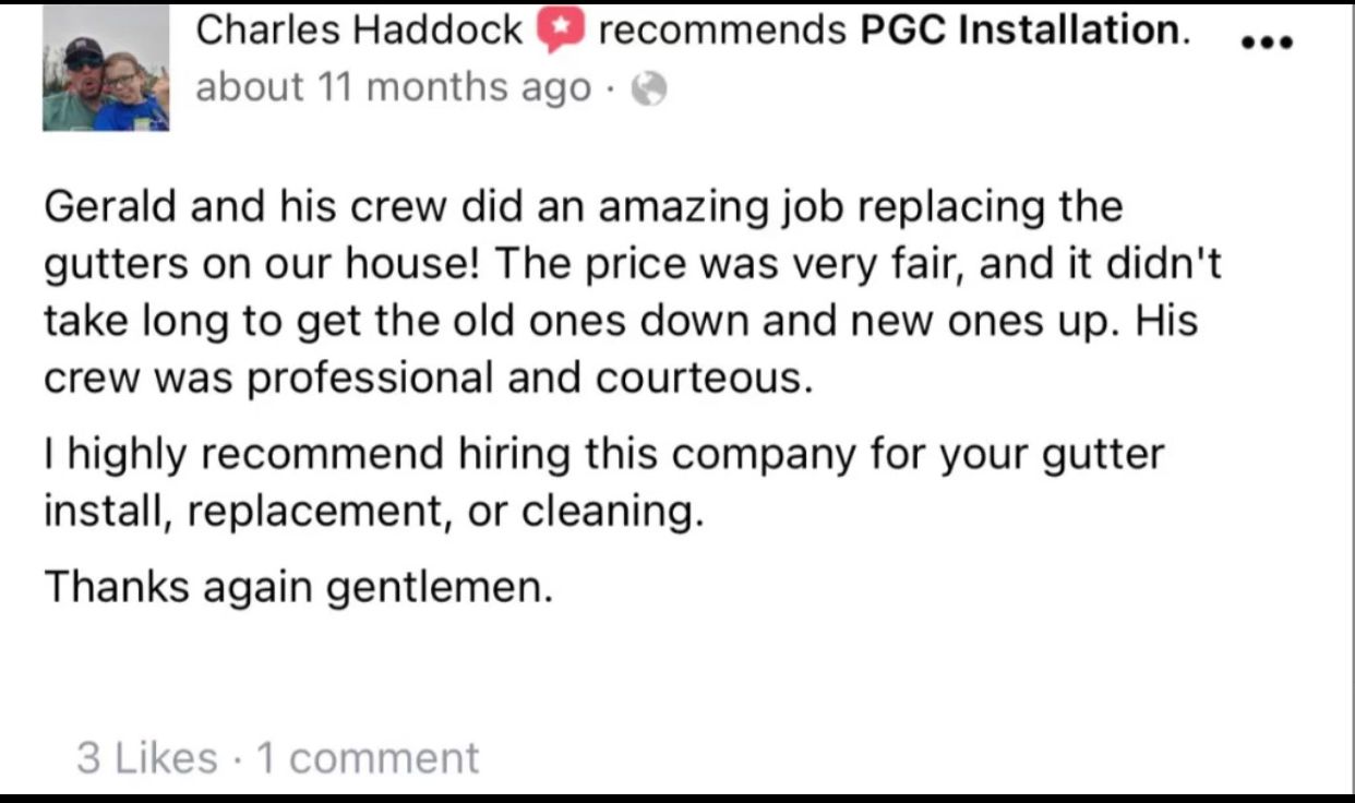 "If you would like a reasonable, reasonable, respectable and over all amazing people to come paint and install what you need I highly suggest PGC installation. They are a group of amazing and professional! I could not have asked for a better crew to come do the job I had. I mostly am going to use them again."